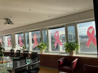 auch die Fenster im Büro tragen die rosa Schleife. DANKE für diese Initiative!
