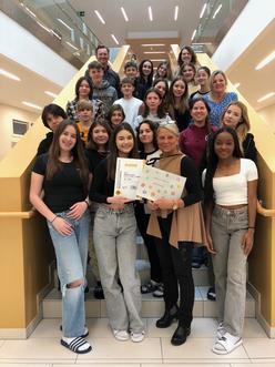 Musiklehrer Andi Pirringer begrüßte die Schüler:innen morgens spielend auf der Highland Bagpipe und Kinder der 4f Klasse organisierten in den Pausen den Jausenverkauf, dessen Einnahmen gänzlich an die österreichische Krebshilfe und an die SOS Kinderdörfer ergeht! Die Spende von € 250,-- wurde persönlich an die Krebshilfe NÖ übergeben. Danke für diese großartige Engagement!