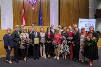 v.l.n.r.: Christian Scherer (GF KH Steiermark), Mag. Gaby Schubert-Sonnbichler (GF KH Wien), Mag. Andrea Konrath (GF KH Burgenland), Sibylle Rasinger, BA, MSc. (GF KH Niederösterreich)