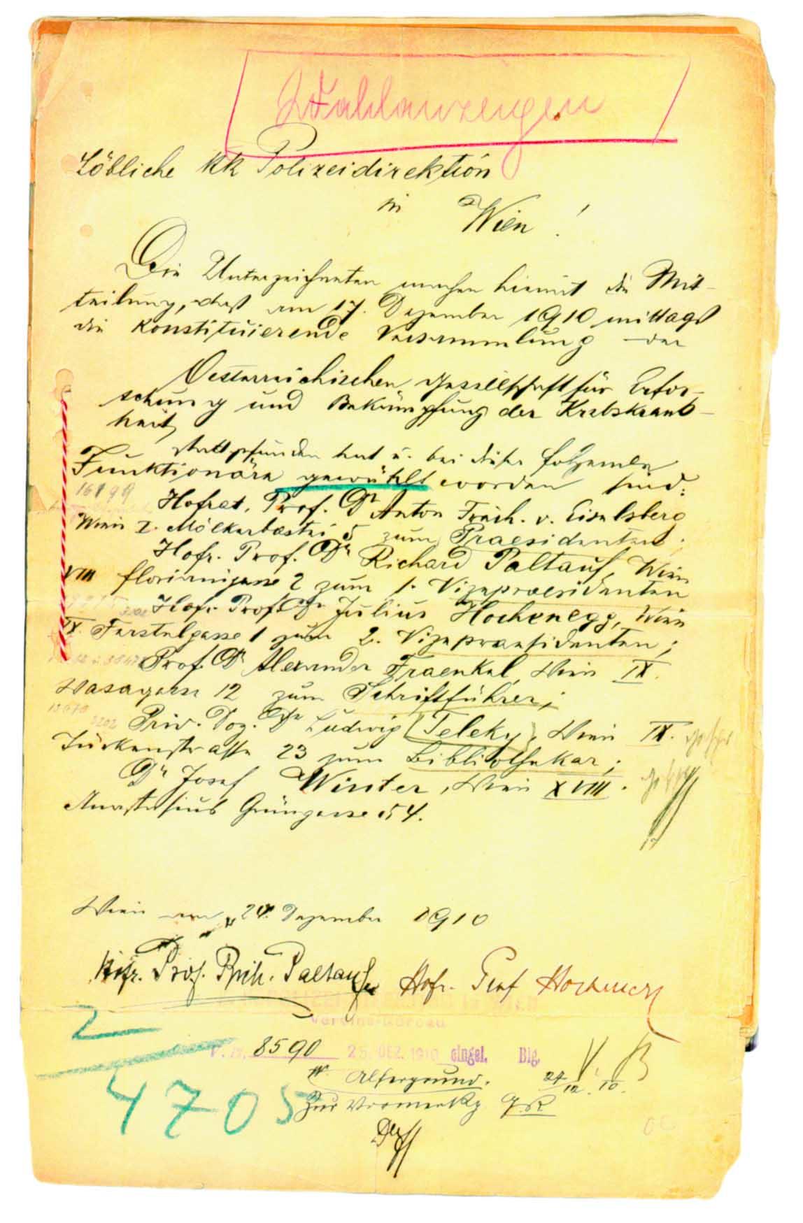 Besonders Prof. Hochenegg, der Patienten daheim besuchte, machte die Not, die er dort sah, tief betroffen. Deshalb erhielten ab 1910 „als bedürftig empfundene Krebskranke“ von der Krebsgesellschaft entweder direkte kleinere Geldbeträge oder die Krebsgesellschaft bezahlte für die Radium-Behandlungen.